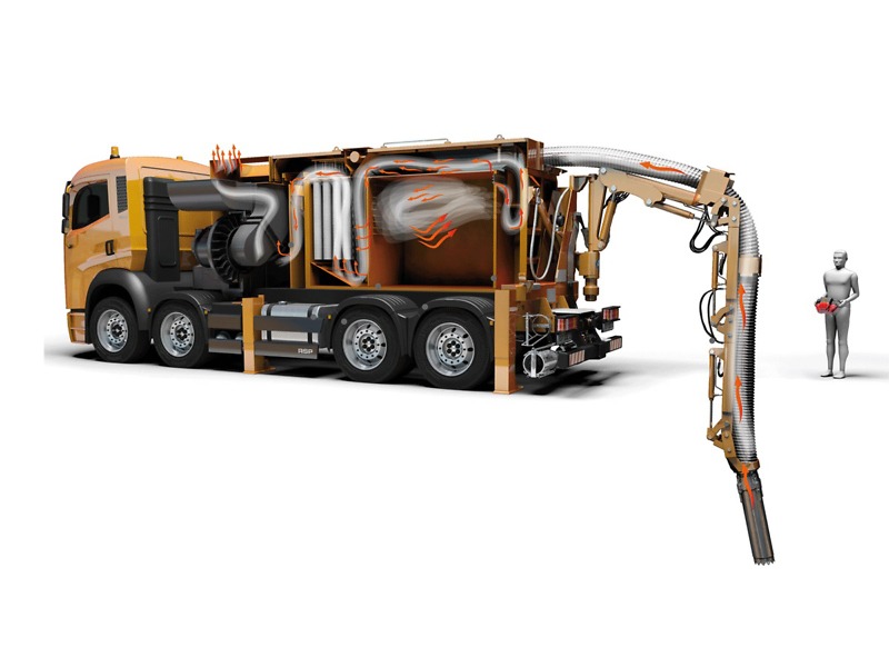 Mit insgesamt vier Behältergrößen und der Option, diese mit Edelstahlverschleißblechen auszustatten, hat man die perfekten Voraussetzungen, um seinen Job wirklich gut zu machen. Die Behältergröße 4 m³ ist speziell für Zweiachsfahrzeuge mit einer Gesamtbreite von 2,30 m entwickelt. Diese kompakte Größe und die Kippachsenhöhe von 2,10 m ermöglichen eine Behälterentleerung auf kleinere Transportfahrzeuge. Der 6 m³ Behälter eignet sich besonders für Fahrzeugchassis mit kurzem Radstand. Mehr Ladevolumen und somit effektiveres Arbeiten bietet der 8 m³ Behälter. Er hat die optimale Größe für alle 3- und 4-Achsfahrgestelle. Dieser wird am häufigsten bei Saugarbeiten im Tiefbau eingesetzt. Für ganz besondere Saugaufgaben zum Beispiel in Industrieanlagen, die ein großes Behältervolumen erfordern, ist der 10 m³ Behälter ausgelegt.